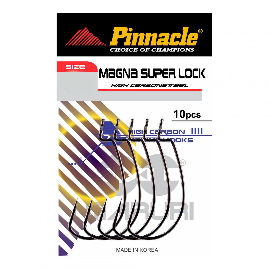 MAGNA SUPER LOCK feitos de aço de alto teor de carbono de alta qualidade com pontas de agulha, quimicamente afiados para rápida penetração. A abertura extra larga se combinam para garantir melhor fixação de iscas softs.