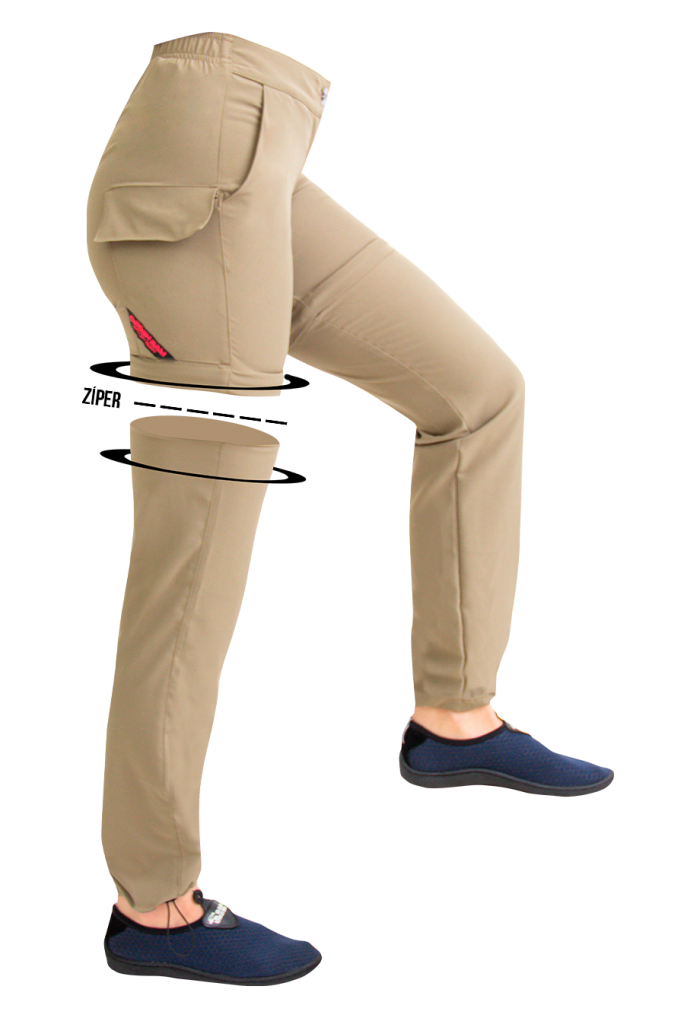 Calça que vira Shorts confeccionada com tecido composto de poliéster e elastano, gerando elasticidade e ajuste ao corpo. Possui bolsos para apetrechos e elástico na barra anti mosquito.